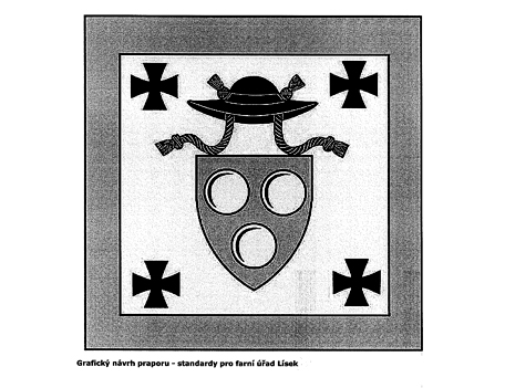 Příklad znaku farnosti Bystřice nad Pernštejnem (pocházejícího z roku 1938, z pera tehdejšího předního heraldika Břetislava Štorma 1907-1960), kde vidíme v červeném štítě stříbrný vztyčený rošt sv. Vavřince (patrona farního kostela) a nad štítem (hodnostní) černý kněžský klobouk s jedním černým střapcem na černých šňůrách po stranách štítu. Červená je barvou mučednické smrti světce i ohně na němž byl upálen, respektive na "doběla" rozžhaveném roštu upečen. Proto i stříbrný (tj. v běžné ilustrační praxi bílý) rošt. Neboť v heraldice platí klíčová zásada o kladení kovů (zlata a stříbra – zobrazovaného běžně bílou a žlutou) na barvu (červenou, modrou, zelenou, černou) nebo naopak.